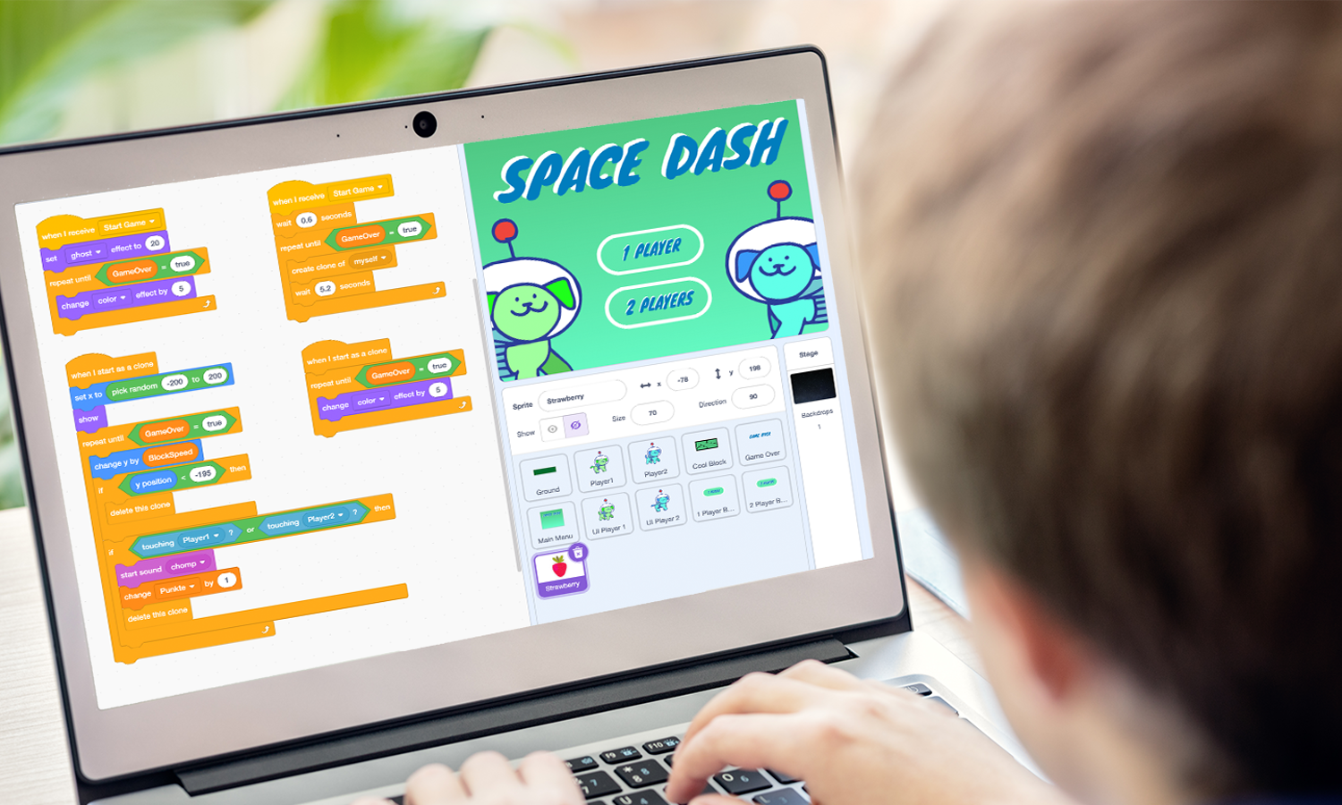 In nur 30 Minuten programmierst du dein erstes Game. Das fertige Game kannst du behalten und damit Familie und Freunde beeindrucken.