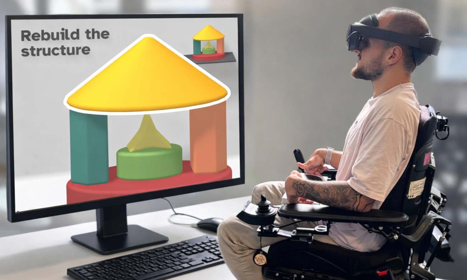 Objekte in 3D bewegen, sitzend und ohne sie zu berühren? Barrierefreie Virtual Reality erleben!